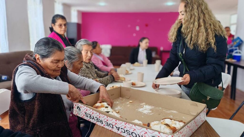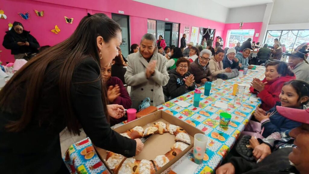 Durante estos encuentros, la alcaldesa compartió la tradicional Rosca de Reyes con las y los abuelitos, reafirmando el compromiso de su administración con el bienestar emocional y social de este sector vulnerable.