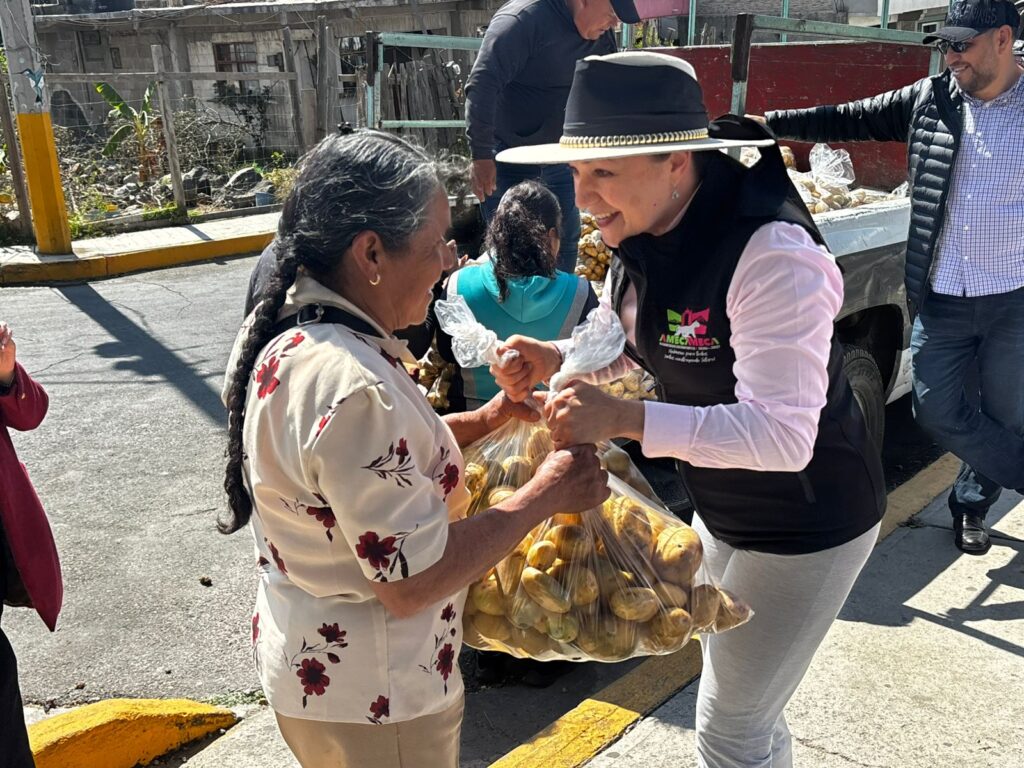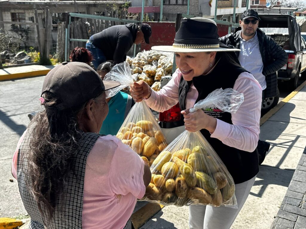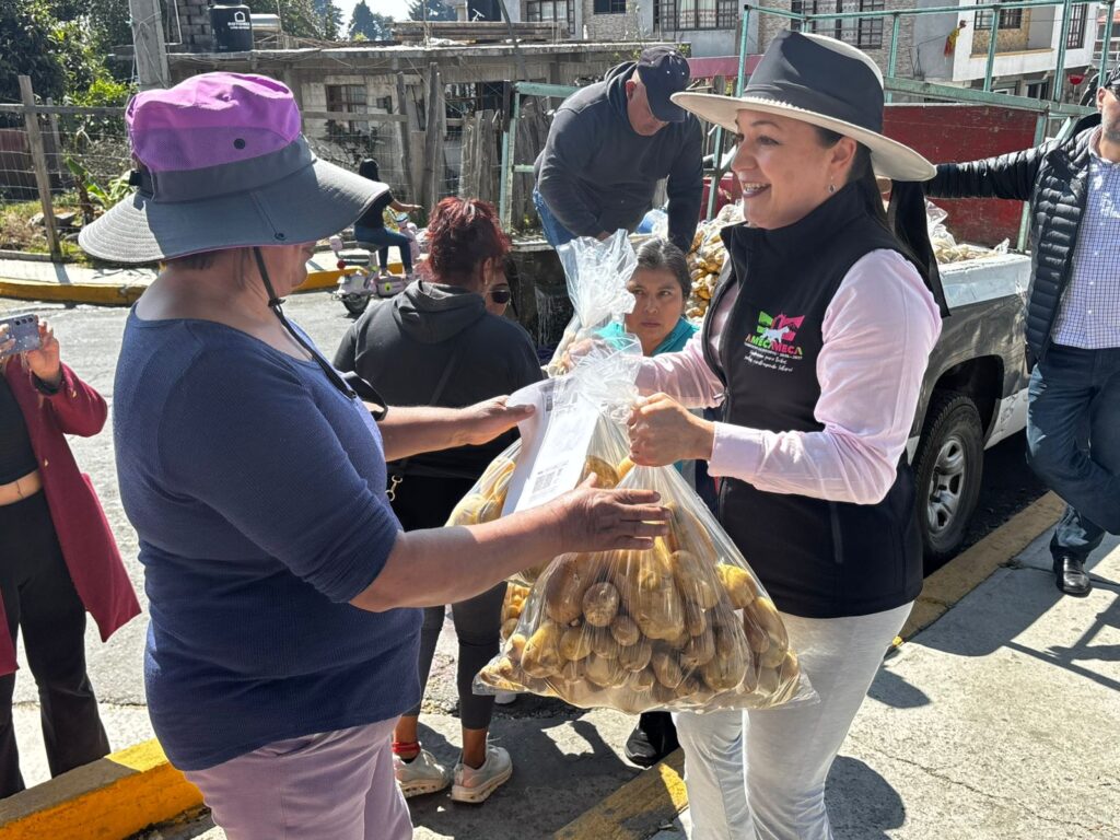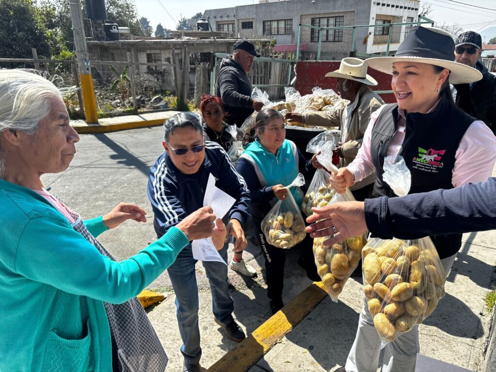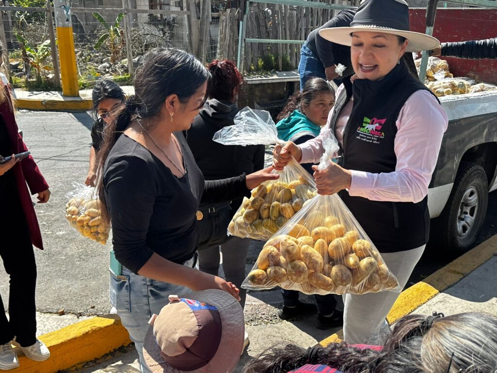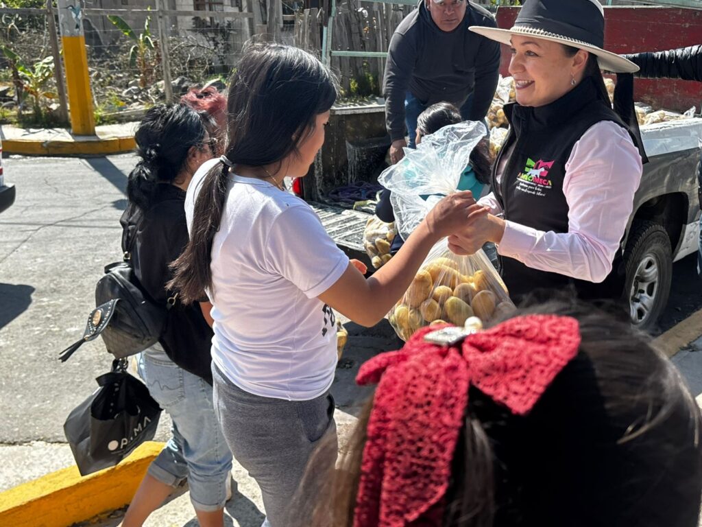 Amecameca, Méx.– En una intensa jornada de apoyo social realizada este sábado 14 de febrero, la alcaldesa Dra. Ivette Topete, encabezó la entrega gratuita de 15 mil kilos de papa, reafirmando así su solidaridad y compromiso con la economía de los hogares amecamequenses.